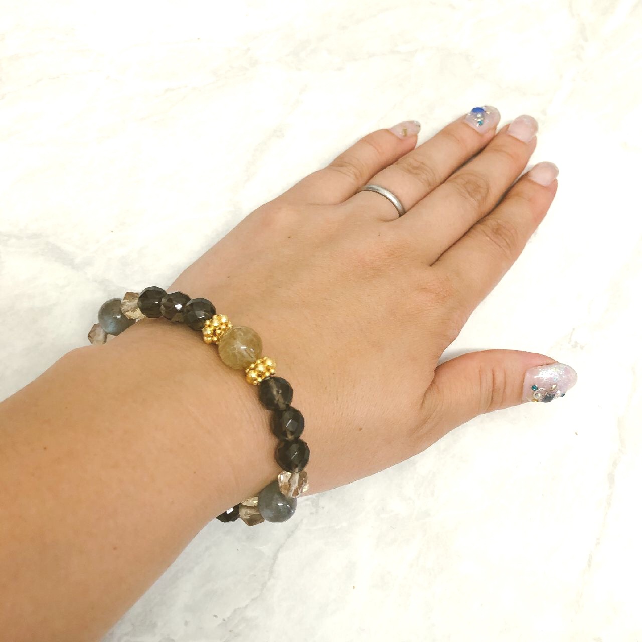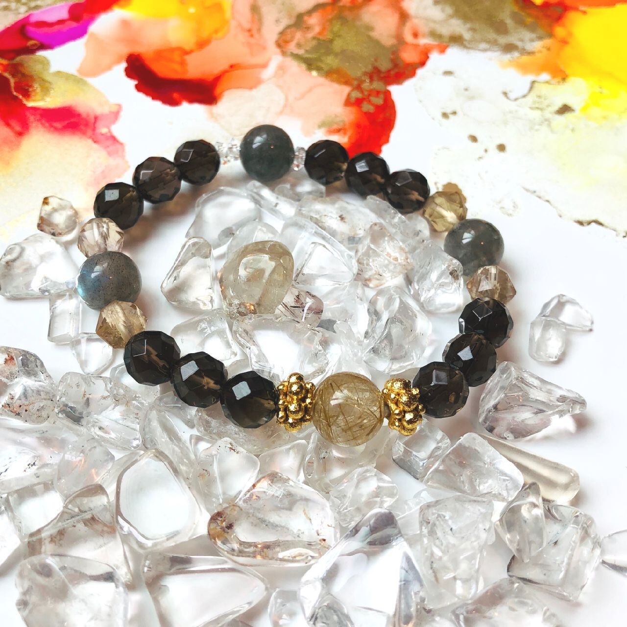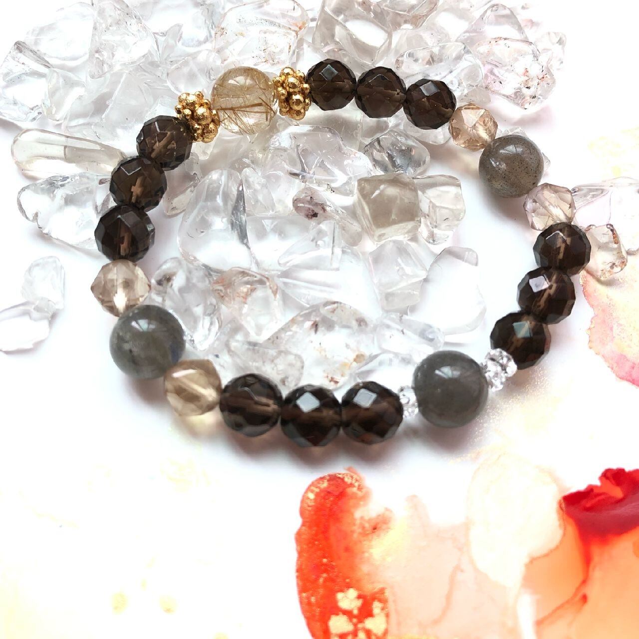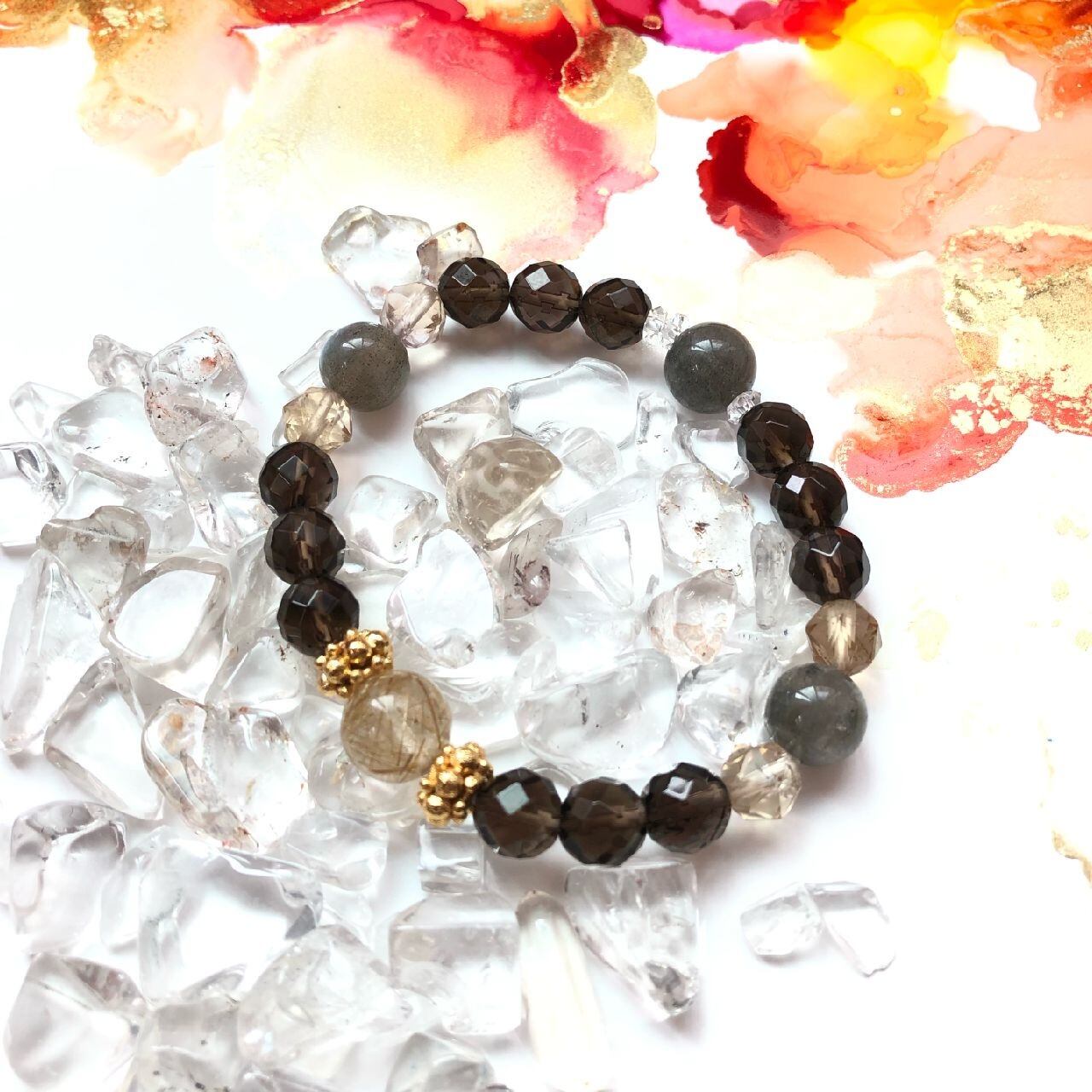 【豊かさの循環ブレス】ゴールドルチル×シトリン×スモーキークォーツ